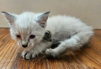 Arabesque is our special needs kitten with fused joints. She is not available for adoption.