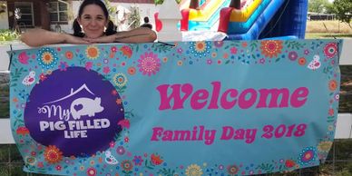 My Pig Filled Life hosted a family day to say thank you to their sponsors, volunteers, and adopters. It was a fun filled day with a picnic, water slide bounce house, watermelon toss, and even a pig kissing booth.